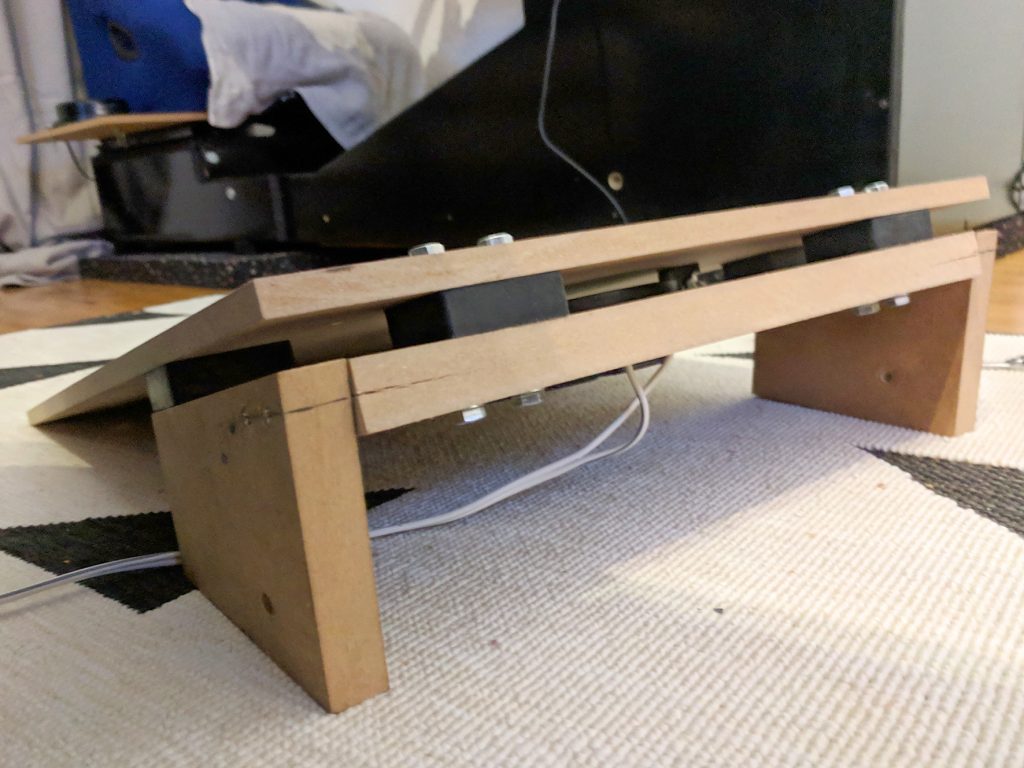Den Pedal-Shaker habe ich an die Pedalhalterung geschraubt, damit er die Pedale möglichst direkt zum Vibrieren bringen kann.